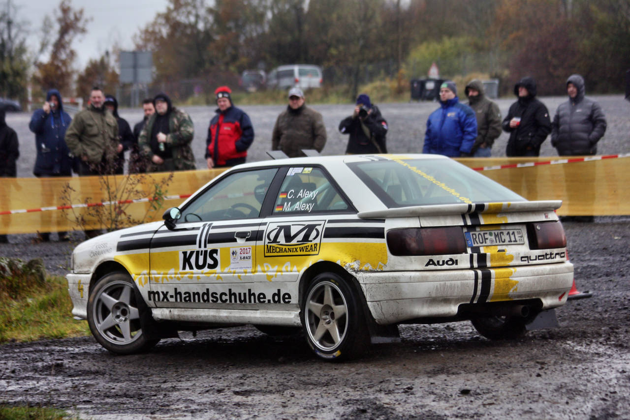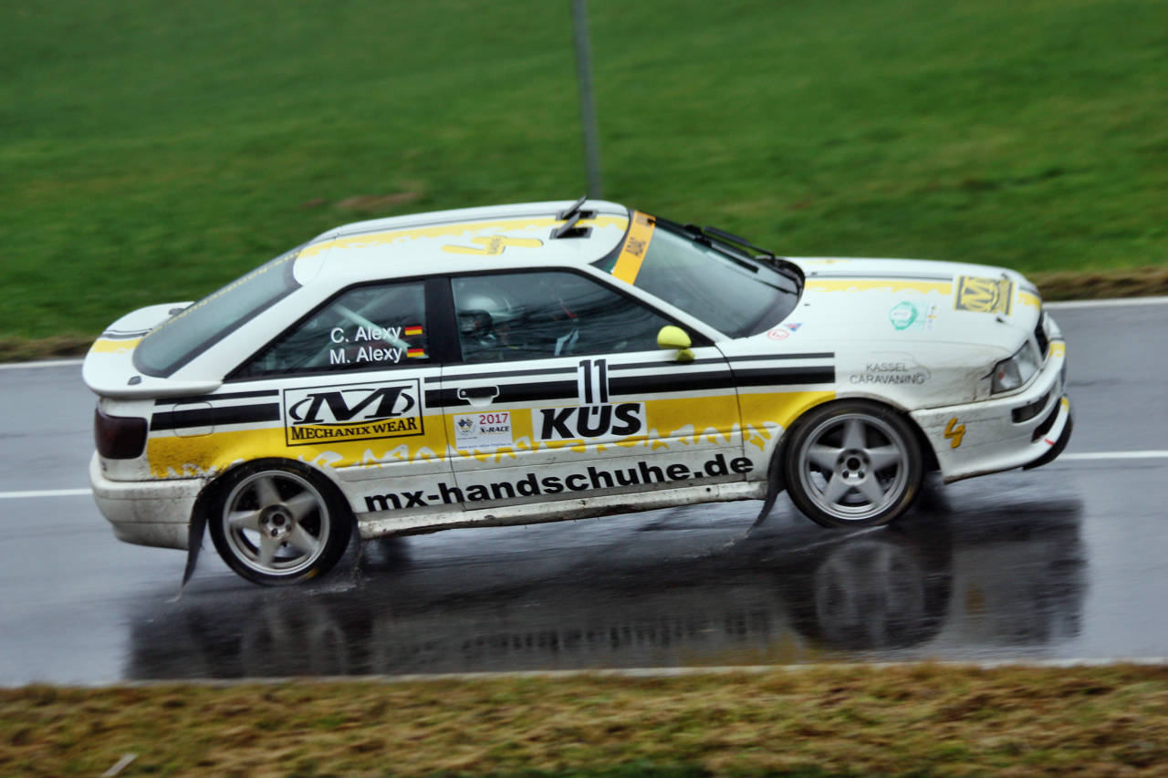 Nach dem ausgiebigen Studium der Wettervorhersagen und des Regenradars entschied sich das Rotenburger Rallyeteam, für den Folgetag den Audi Quattro S2 mit Regenreifen auszurüsten.